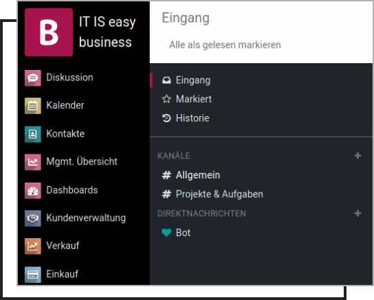 This menu bar flexibility is not an extra plugin — it’s included out-of-the-box in ITISeasy.business Version 18.